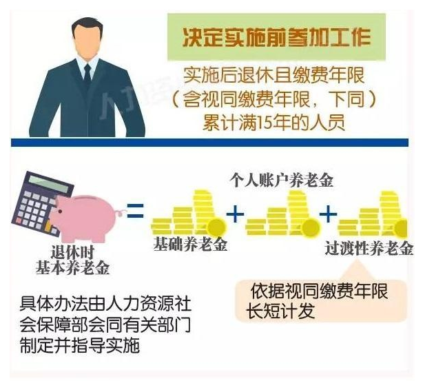 二、中人。指改革实施前参加工作、改革实施后退休的人员。对中人设置了10年的过渡期。过渡期内实行新老待遇计发办法对比,保低限高。