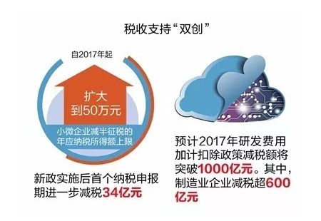 在研发费用加计扣除税收优惠政策支持下,企业不仅有效降低税负、增加现金流,还不断加大研发投入。邓勇说,预计2017年这项政策的减税额将突破1000亿元。在所有享受减税优惠的企业中,制造业企业占比超过60%,成为该项政策的最大受益者,年减税额预计超过600亿元。