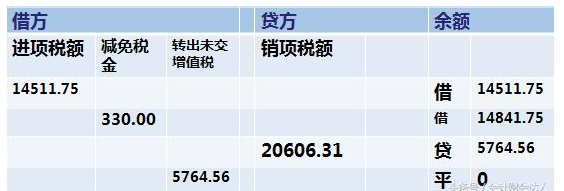 应纳增值税= 20606.31- 14511.75=6094.56元