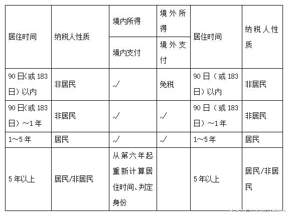 (3)对在中国境内无住所的个人,工资、薪金所得征税规定可归纳为下表: