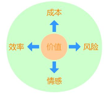 “效率”、“成本”、“风险”、“情感”该四个维度又可以分别从“对内”、“对外”进行阐述。