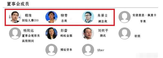 你看,工商信息中的董事只有3位,其中程维和柳青既在工商登记中,也在实际董事中;而陈汀在实际中的董事地位由朱景士代替。